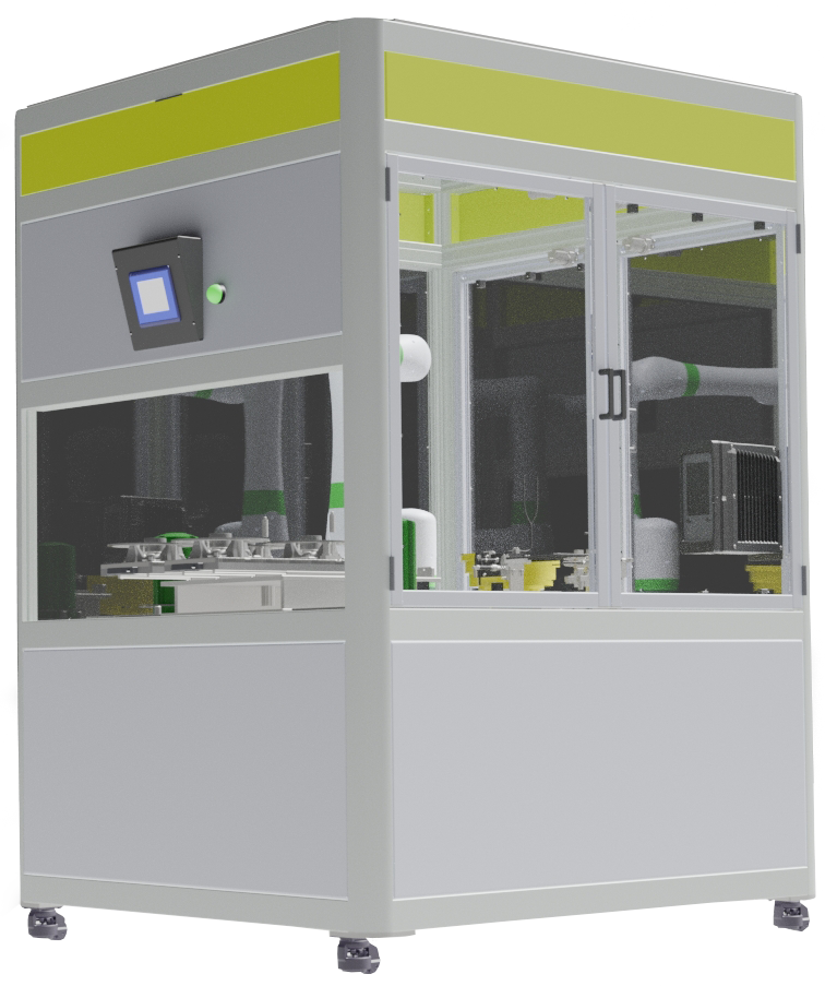 Solución inteligente de atornillado que integra un robot con herramientas de precisión, alimentación automática de tornillos y control de torque. Ideal para procesos de ensamble que requieren alta presición, repetibilidad, trazabilidad y flexibilidad. Esta solución asegura la calidad del producto, reduce errores humanos y aumenta la productividad, manteniendo un entorno seguro para los operarios.